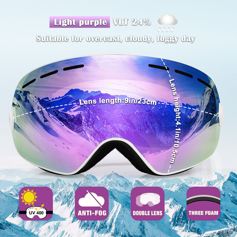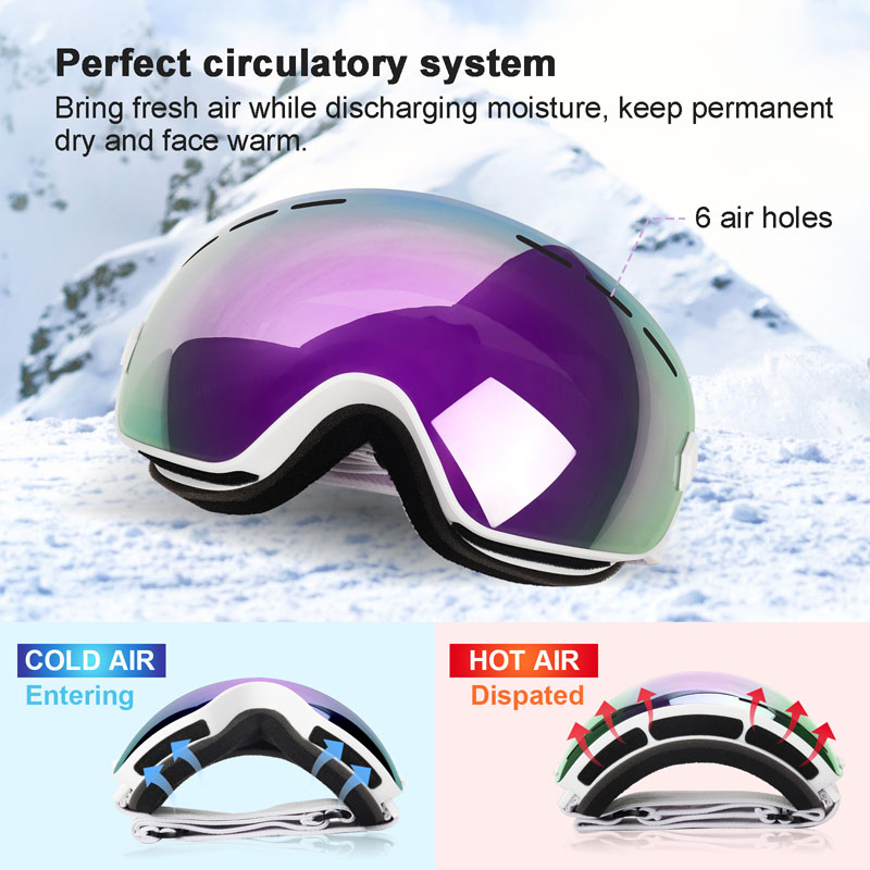 Det dubbla skiktlinsen för att förhindra att dimma i skidåkning eller snowboard. Skidglasglaset har också ett smart luftbytesystem för att hålla rätt temperatur i skyddsglasögon för att förhindra att dimma.